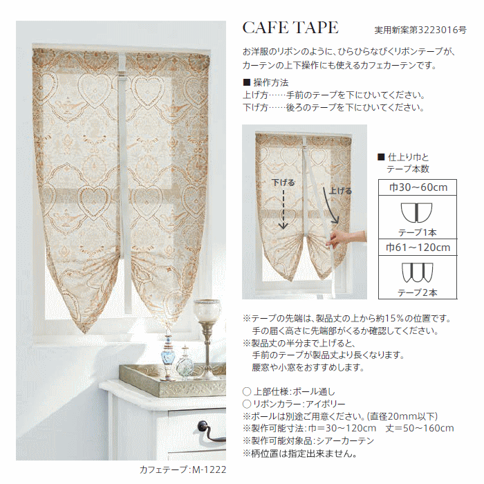 カフェテープ仕様なので、裾をきゅっと結んで丈感を調整でき、窓辺に抜け感のある表情をプラス。